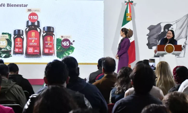 A 04 de septiembre del 2025.- La presidenta Claudia Sheinbaum presentó el Café Bienestar, producido por manos mexicanas de Oaxaca, Puebla, Veracruz y Guerrero. Destacó que uno de los beneficios a la salud es que es café puro sin aditivos como edulcorantes o saborizantes.