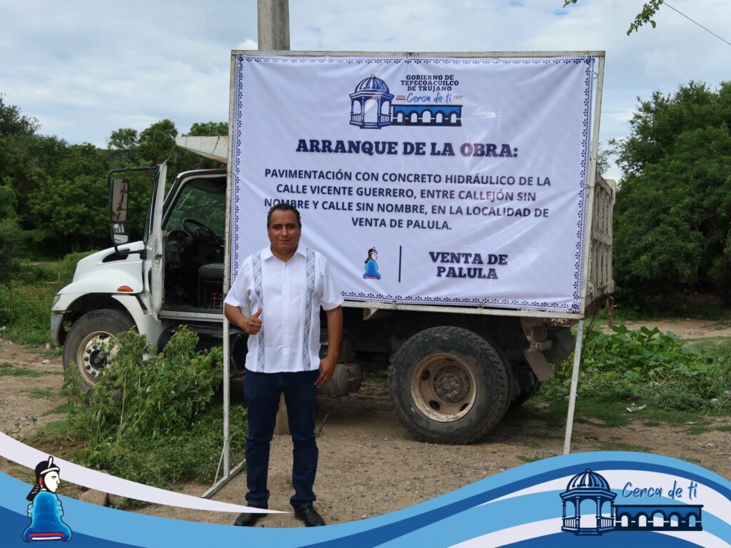 Tepecoacuilco, Gro., a 07 de agosto del 2025.- Reafirmando su compromiso con el desarrollo de la infraestructura vial, el presidente municipal de Tepecoacuilco, Ing. Julio Galarza Castro, dio inicio a los trabajos de pavimentación con concreto hidráulico en la calle Vicente Guerrero, ubicada en la localidad de La Venta de Palula.