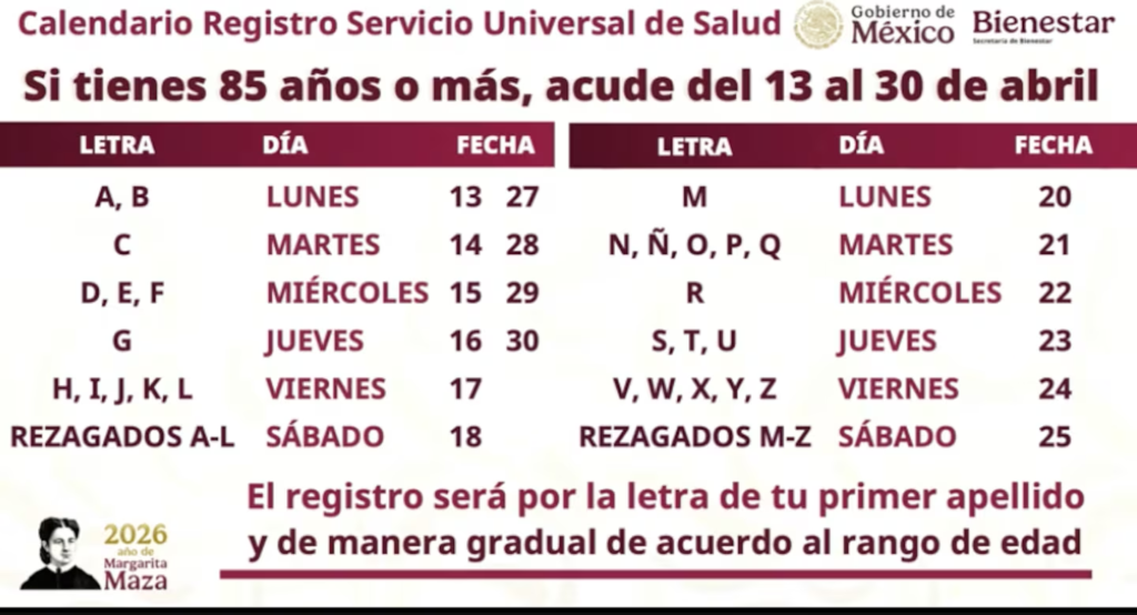 A 08 de abril del 2026.- El Gobierno de México presentó el esquema de registro para la credencialización del Servicio Universal de Salud en México, con el cual cualquier mexicano podrá ir a recibir atención médica al IMSS, ISSSTE o IMSS – Bienestar.