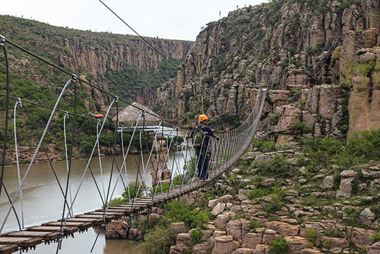 3. Lánzate a la aventura y explora Boca de Túnel. Ésta se localiza en un cañón semidesértico en la parte norte del Pueblo Mágico. Aquí, además de practicar senderismo, rapel y de lanzarte por sus dos tirolesas, podrás atravesar por alguno de sus 13 puentes colgantes. ¿Te atreverías?