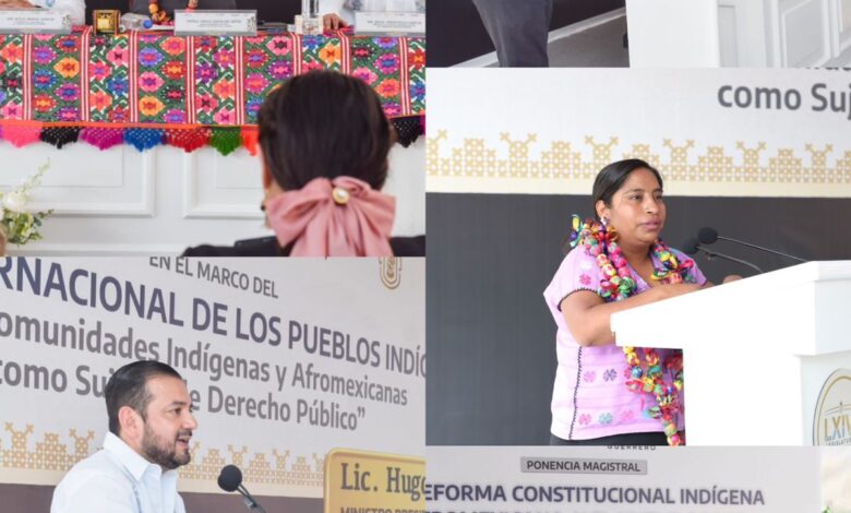 Chilpancingo, Gro. 08 agosto de 2025.- En el marco del Día Internacional de los Pueblos Indígenas, el Congreso del Estado de Guerrero en coordinación con el Gobierno de México, el Instituto Nacional de los Pueblos Indígenas (INPI) y la Secretaría para el Desarrollo de los Pueblos Indígenas y Afromexicanos del Gobierno de Guerrero, organizó la conferencia magistral “La Reforma Constitucional Indígena y Afromexicana y el Nuevo Poder Judicial en México”, impartida por el ministro presidente electo de la Suprema Corte de Justicia de la Nación (SCJN), Hugo Aguilar Ortiz.