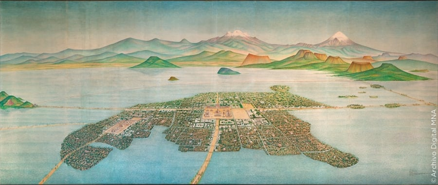 Mexico-Tenochtitlan estaba sobre el lago de Texcoco, el cual era salado. Sin embargo, la ciudad estaba rodeada de agua dulce gracias a los diques construidos por los mexicas. Estos permitían concentrar ahí el agua que desembocaba de los ríos que alimentaban al lago.