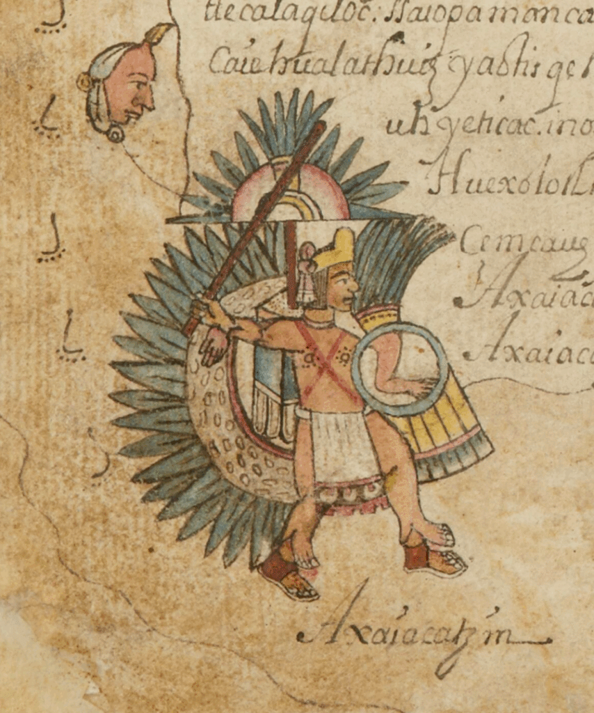 Es así que cada tlatoani mexica lo portaba con su indumentaria guerrera durante las campañas militares que llegaban a encabezar. La representación más famosa de un gobernante tenochca portando este penacho es la ilustración, en el Códice Durán, del tlatoani Axayácatl durante la conquista de Mexico-Tlatelolco en el año 1476. En el documento se aprecia claramente que lo lleva como un estandarte o estafeta montada sobre su espalda. También en la pieza arqueológica de «La piedra de Tizoc» se puede apreciar un relieve de este gobernante vistiendo el ornamento.