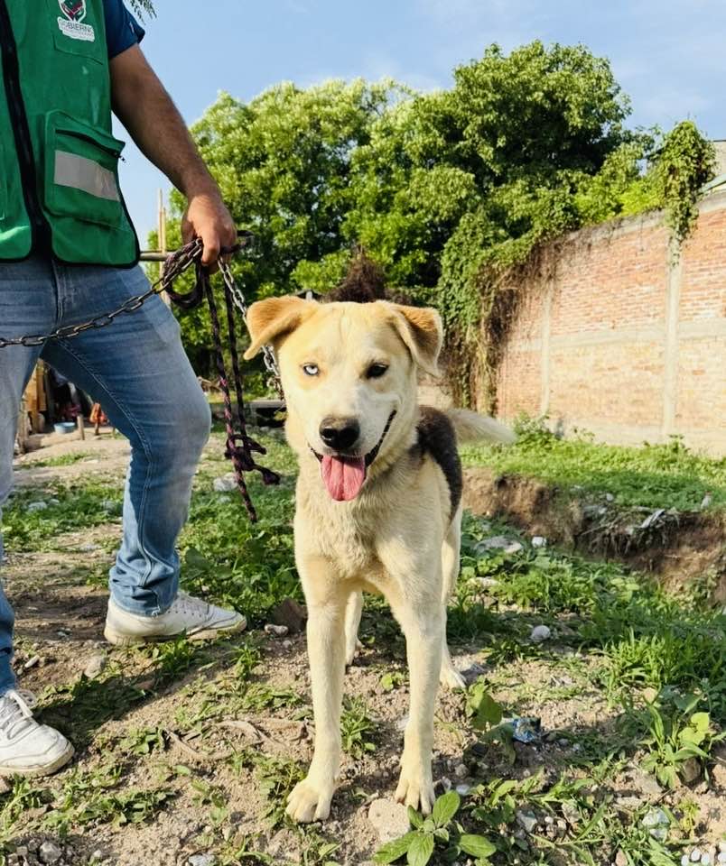 El perro, de raza mestiza con cruza de Husky y pelaje amarillo con negro, fue encontrado amarrado con una cadena muy corta, sin acceso a agua ni alimento, expuesto directamente al sol y en estado de desnutrición grado 3. Se estima que el canino tiene aproximadamente dos años de edad.