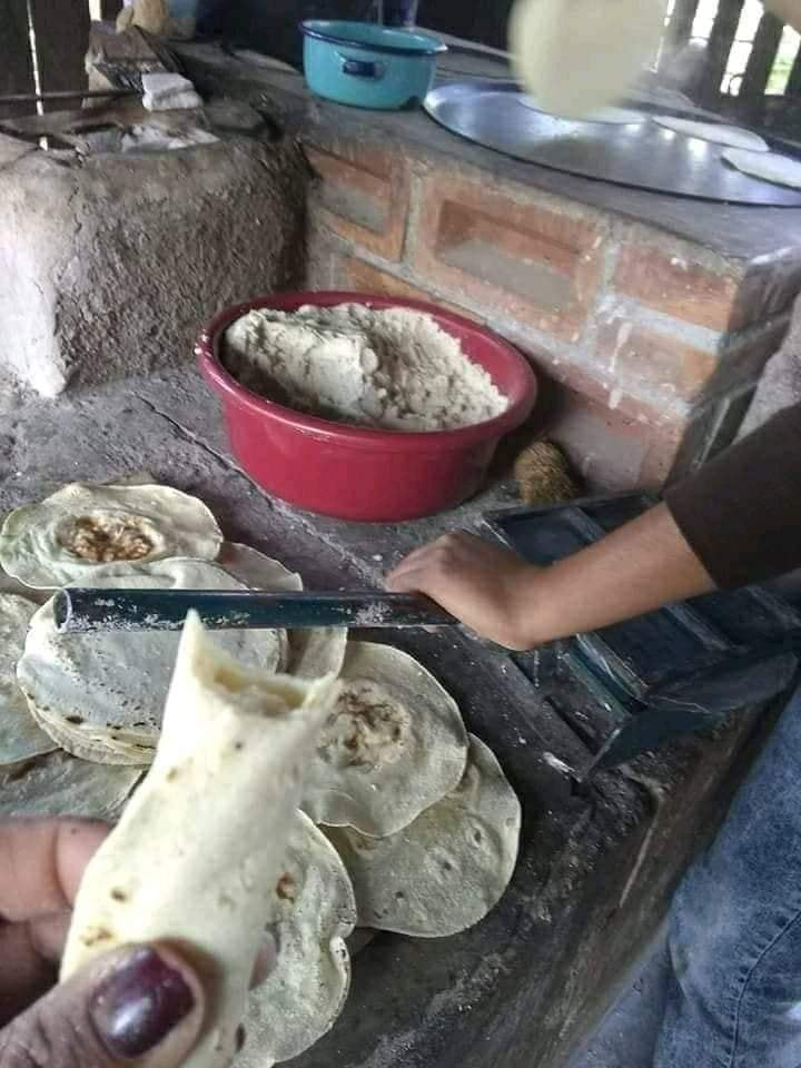 Este gesto no solo es costumbre, es convivencia. Vecinos que pasan a saludar, familiares que se acercan al fogón, niños que esperan turno para recibir su tortilla infladita, todos comparten el mismo gusto por ese taco que sabe a campo, a hogar y a tradición viva.