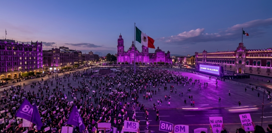 ¡Bienvenidas feministas! El Zócalo recibirá la marcha del 8M con iluminación morada en todos los edificios históricos.